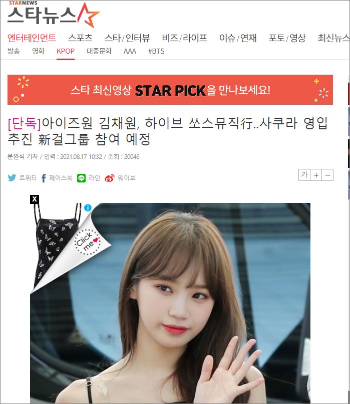 아이즈원 출신 김채원이 하이브 새 걸그룹에 합류한다는 소식이다. 에 대해 하이브 측은 확인 드릴 수 없다고 부정도 동의도 하지 않았다.