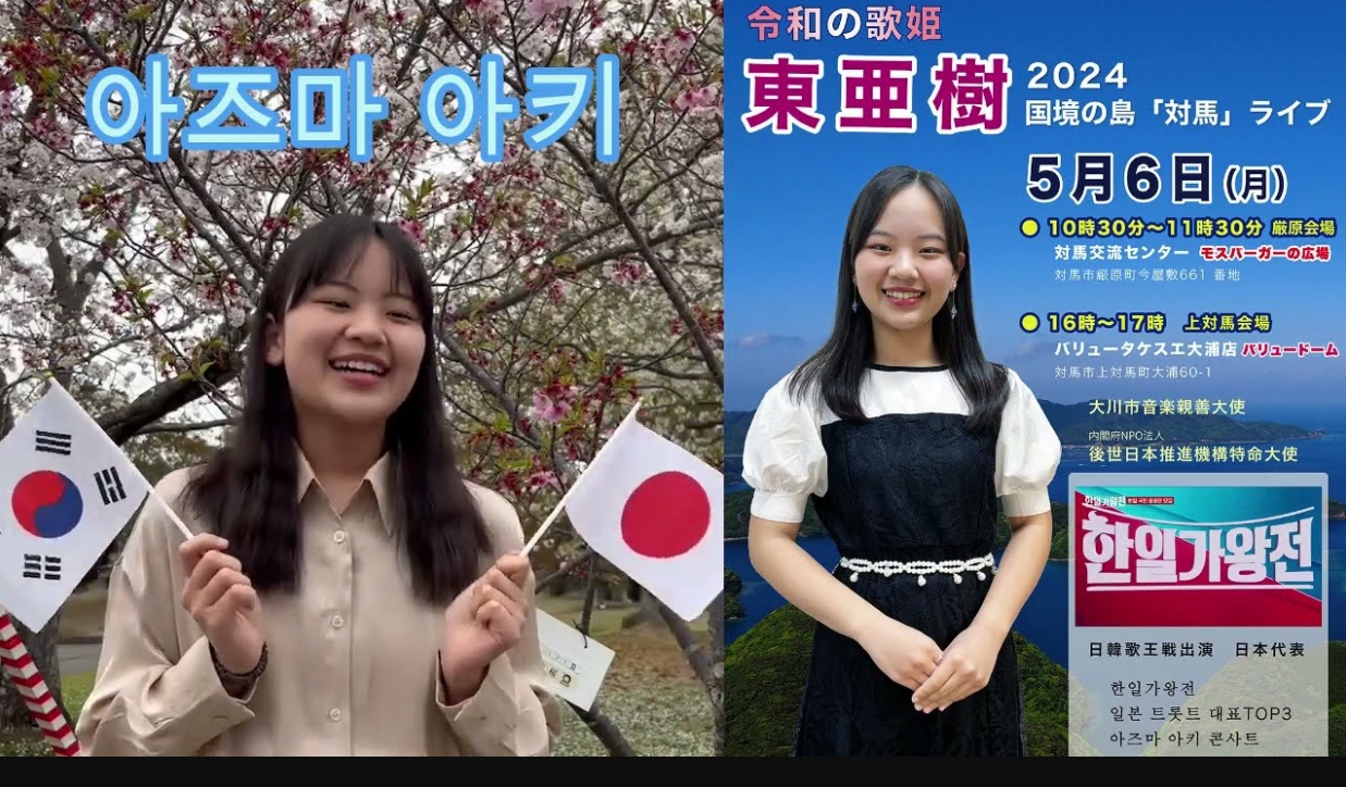 아즈마 아키가 한국에서 주목받기 시작한 계기는 2024년 방영된 한국의 음악 경연 프로그램인 "MBN 한일가왕전"에 참가하면서부터입니다. 이 프로그램에서 아즈마 아키는 "목포의 눈물"과 같은 한국 전통 가요를 완벽한 발음과 감정 표현으로 소화해 한국 시청자들에게 깊은 인상을 남겼습니다. 그녀의 출연 이후 한국에서도 많은 팬을 확보하게 되었고, 트로트와 엔카를 모두 소화하는 가수로 자리매김하게 되었습니다.